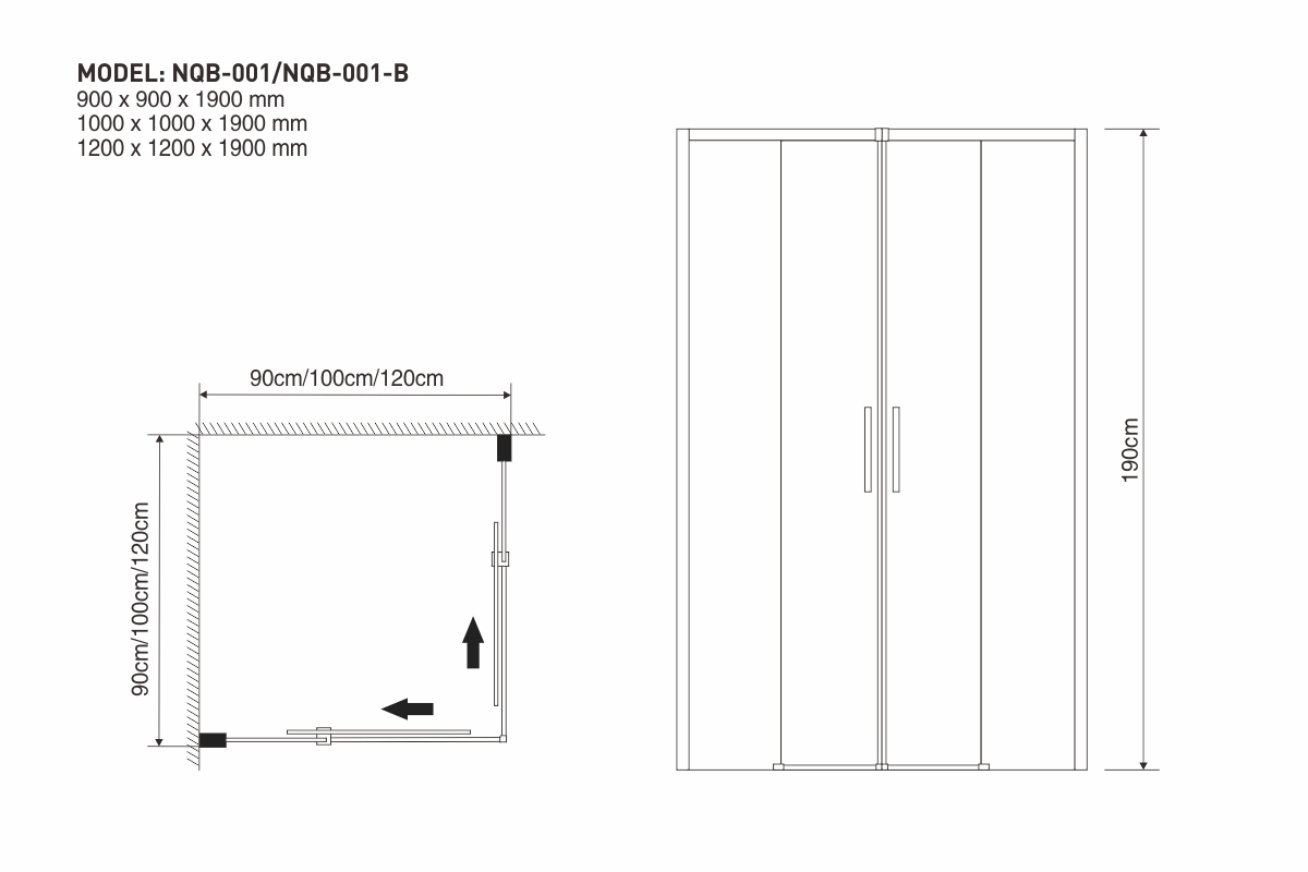 1000 x 1000 x 1900 mm